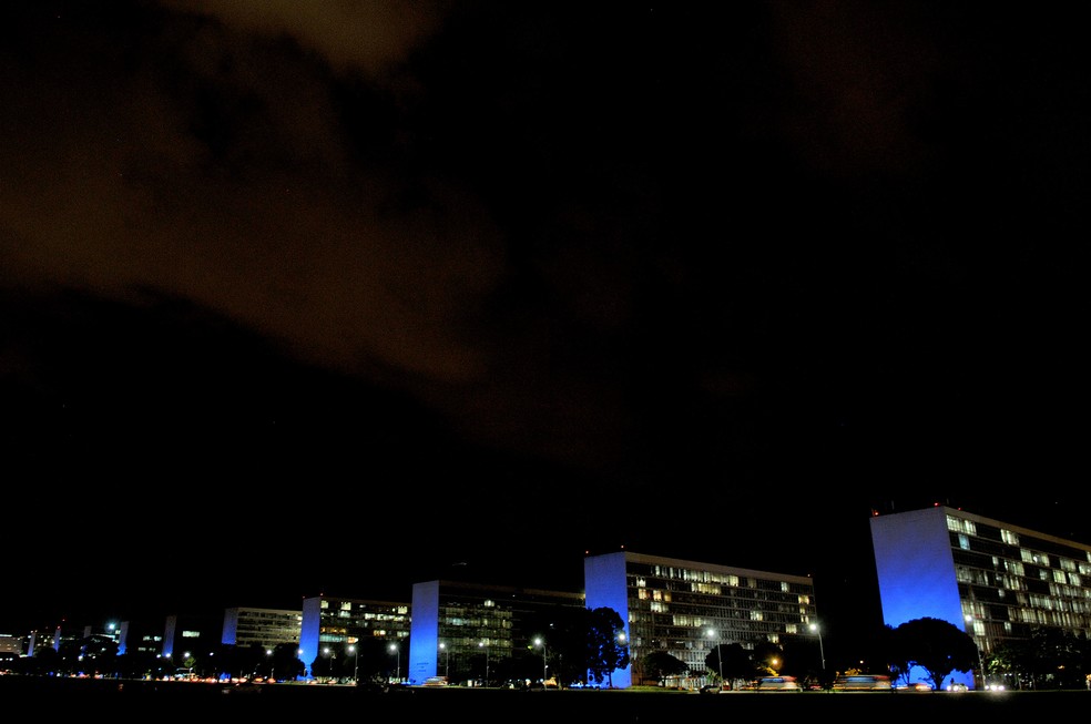 Esplanada dos Ministérios também foi iluminada para participar da campanha (Foto: Nilson Carvalho/Agência Brasília)