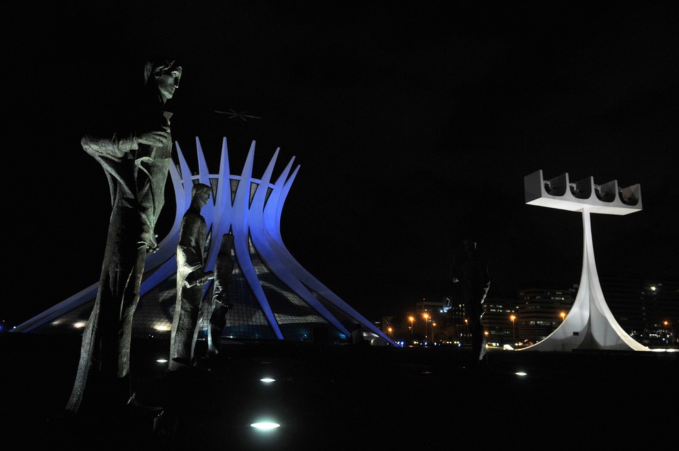 Catedral também recebeu a iluminação azul (Foto: Nilson Carvalho/Agência Brasília)